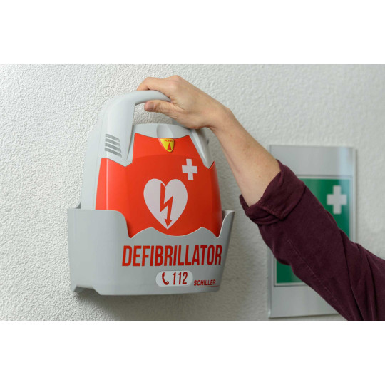 Support mural intérieur défibrillateur Schiller FRED PA-1. La station d’accueil est thermoformé pour épouser les courbes du FRED PA-1. Elle permet une prise en main facile de l’appareil.