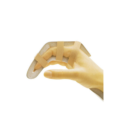 L'attelle type Dr Iselin en aluminium recouverte d'un support en mousse permet d'immobiliser les doigts ou le poignet.