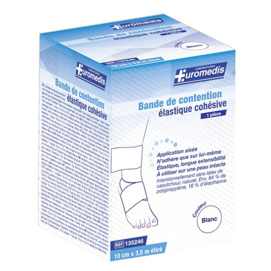 La bande de contention cohésive des laboratoires EUROMEDIS est fabriquée à partir de matériaux élastiques et auto-adhérents, ce qui permet une application sans attaches supplémentaires. Le produit est utilisé principalement pour le soutien et la compression des membres en cas de blessures, de traitement pour les maladies veineuses et le maintien des pansements. A usage unique.