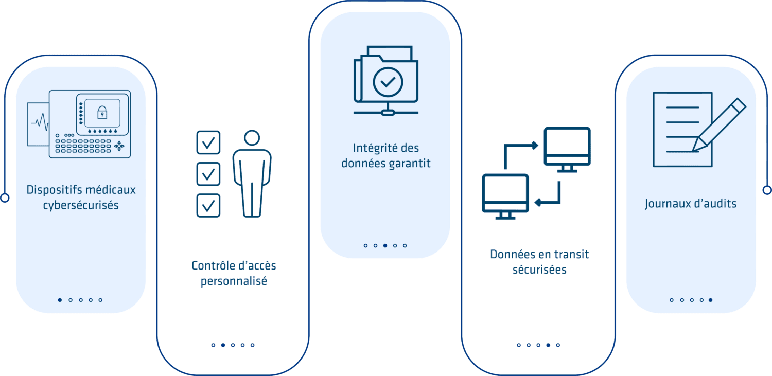 Le premier point à vérifier lors de l’acquisition d’un dispositif médical est sa capacité à résister aux menaces numériques. Les dispositifs médicaux cybersécurisés sont soumis à des tests de pénétration professionnels rigoureux. Ils mettent les dispositifs à l’épreuve pour identifier et corriger toute vulnérabilité potentielle. Un objectif clair : garantir que ses dispositifs sont à l’abri des cyberattaques malveillantes.