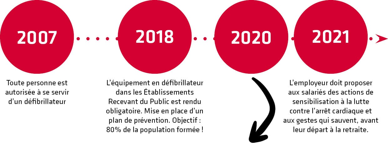 En matière de premiers secours, la France accuse encore un retard. En effet, on dénombre environ 46000 morts subites par an sur le territoire. Le taux de survie suite à un arrêt cardiaque y est nettement inférieur à celui des pays voisins. Avant 2018, celui-ci était de seulement 3%, soit un taux 4 à 5 fois moins élevé que dans certains pays où les lieux publics sont équipés de défibrillateurs et où la population a été formée aux gestes qui sauvent dès l’enfance. Si l’État en a fait sa priorité en 2018, la Croix Rouge estime que seulement 40 % des Français sont formés à la prise en charge de l’arrêt cardiaque. La question de l’équipement en défibrillateurs et de la formation anime la société depuis plus de 20 ans. La législation se renforce à la faveur d’une meilleure prise en charge des victimes d’arrêt cardiaque. Quelles sont aujourd’hui les obligations de l’entreprise ?