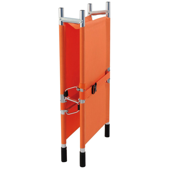 Le brancard pliable en 4 est doté d'une structure aluminium de haute résistance et d'un tissu étanche, ignifugé et anti-fissuration.
