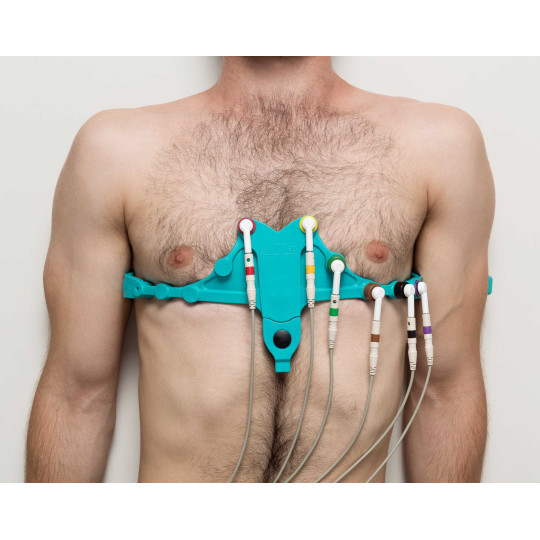 Cette ceinture ECG se pose facilement et permet au médecin d'effectuer un électrocardiogramme de manière rapide : plus besoin de poser les électrodes une à une.
