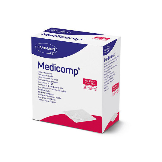 Compresses Medicomp non tissées stériles disponibles en 30 g ou 40 g.