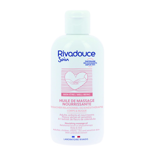 L'huile de massage nourrissante est formulée avec 98% d'ingrédients d'origine naturelle. Ce produit est idéal pour les peaux sensibles et sèches, testé sous contrôle dermatologique et utilisé pour le corps, la nuque et les membres. Sa composition à base d'huile végétale permet de nourrir et assouplir la peau.