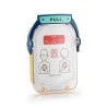 Cartouche complète avec couvercle en plastique contenant la paire d'électrodes et un poster du torse d'un enfant pour aide à la RCP.