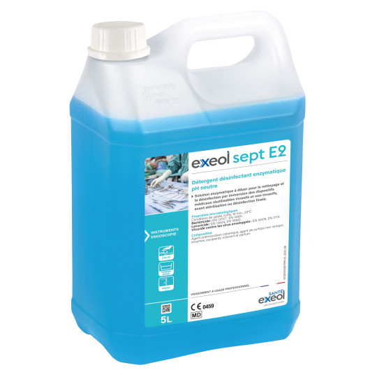 EXEOL SEPT E2 est un produit à la fois détergent et désinfectant. Ses propriétés enzymatique au pH neutre permettent un nettoyage ainsi que la désinfection par immersion des instruments médicaux réutilisables invasifs et non-invasifs avant stérilisation ou désinfection finale.