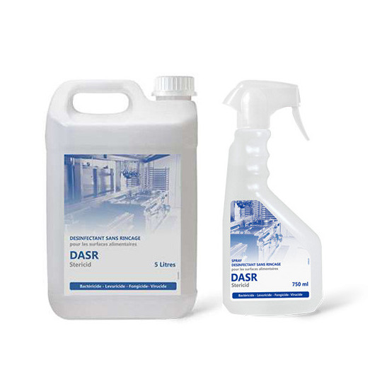 STERICID DASR est un liquide désinfectant sans rinçage pour les surfaces et matériels alimentaires préalablement nettoyés.