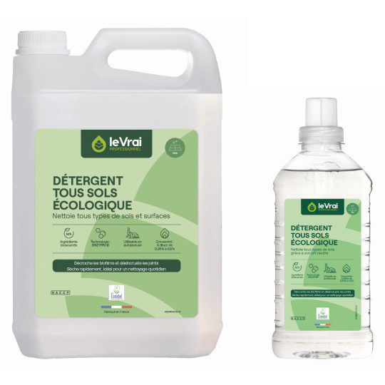 Le détergent tous sols écologique est certifié écolabel. Ce produit sera idéal dans un usage quotidien pour tous types de sols et surfaces qui décroche les biofilms, désincruste les joints et sèche rapidement. Le détergent à une odeur de pins des Landes, un aspect liquide et incolore. Le produit écolabélisé s'utilise de façon manuel ou à l'aide d'une autolaveuse.