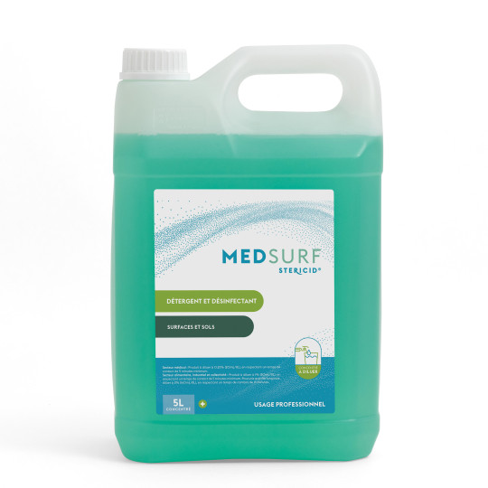 Le détergent désinfectant neutre Medsurf est un concentré à diluer conçu pour la désinfection des surfaces dans les environnements médicaux, alimentaires, industriels et collectifs. Le produit contient un parfum menthe efficace contre les bactéries, levures, moisissures et virus.