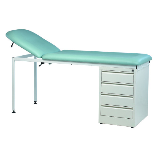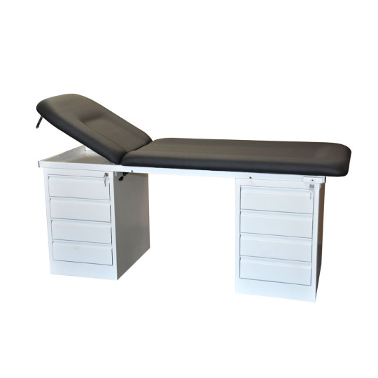 Le divan d'examen fixe Vog Medical dispose d'un ou deux blocs de 4 tiroirs permettant au médecin d'accéder rapidement aux instruments pendant l'auscultation.