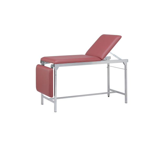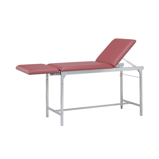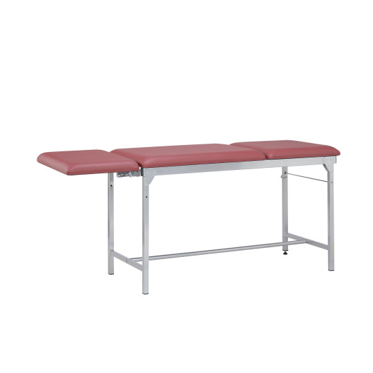 Le divan pédiatrique 3 parties à hauteur fixe 80 cm avec jambière rabattable. Le dossier est réglable en toutes positions par 2 crémaillères mécaniques autobloquantes