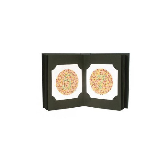 Le test chromatique d'Ishihara est un test fiable et reconnu mondialement. Constitué de 38 planches, chaque planche présente un rond constitué de petis cercles de différentes tailles, couleur, saturation et luminosité qui dissimule une forme ou un chiffre.