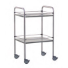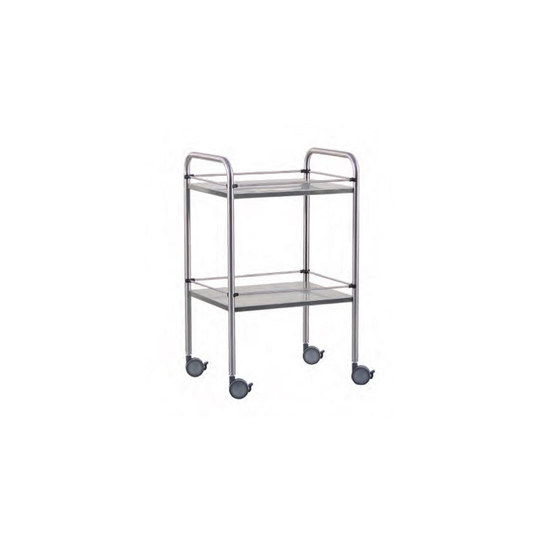 Le guéridon Praxiline est équipé de 2 plateaux avec galeries amovibles et de 4 roues en caoutchouc dont 2 avec freins.