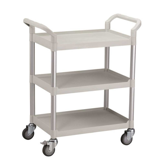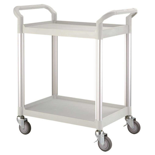 Le guéridon en matière plastique et en aluminium est léger, robuste et très maniable lors des déplacements grâce aux poignées ergonomiques et aux roulettes pivotantes de haute qualité.