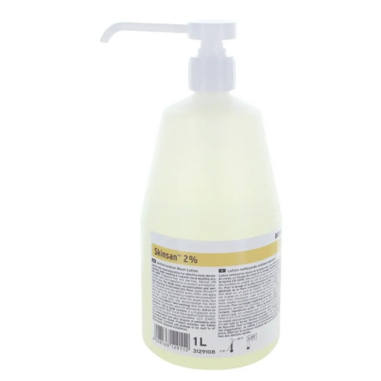 La lotion lavante Skinsan 2% des Laboratoires Anios est destinée à la décolonisation, le lavage du corps et au lavage hygiénique des mains selon la norme EN 1499. Les produits de cette gamme sont composés à 2% de chlorhexidine