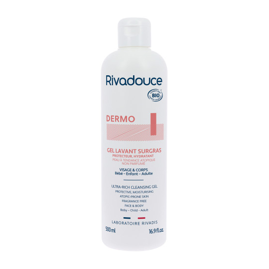 Le gel lavant surgras est composé à 99.8% de produits d'origines naturelles, certifié BIO. Le produit est fabriqué en France et testé sous contrôle dermatologique. Le gel lavant est conseillé pour les peaux à tendance atopique chez l'adulte, enfant et bébé, ne contient aucun parfum et ne pique pas les yeux.