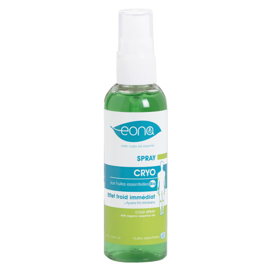Le spray CRYO de la marque EONA est un produit formulé d'huiles essentielles BIO : camomille romaine, cyprès, girofle, Cajeput, Eucalyptus, camphre et m menthol.
