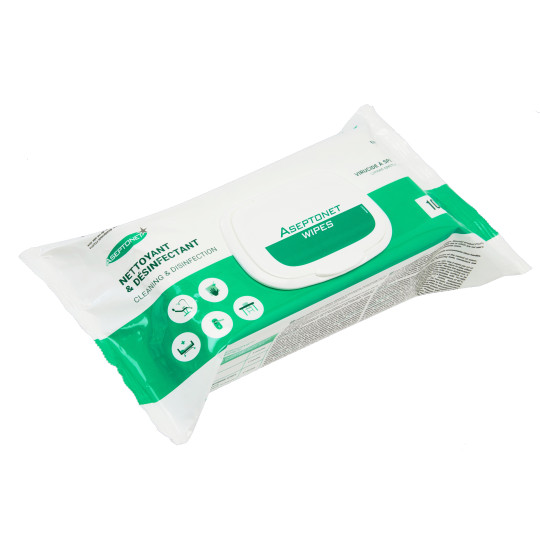 Les lingettes sans alcool Aseptonet sont  des lingettes désinfectantes conçues pour la désinfection rapide des surfaces et des équipements médicaux. Le produit est souvent utilisé dans les environnements hospitaliers et tout autres lieux où l'hygiène est primordiale. Elles ont un large spectre d'action efficace contre les bactéries, les virus et les champignons.