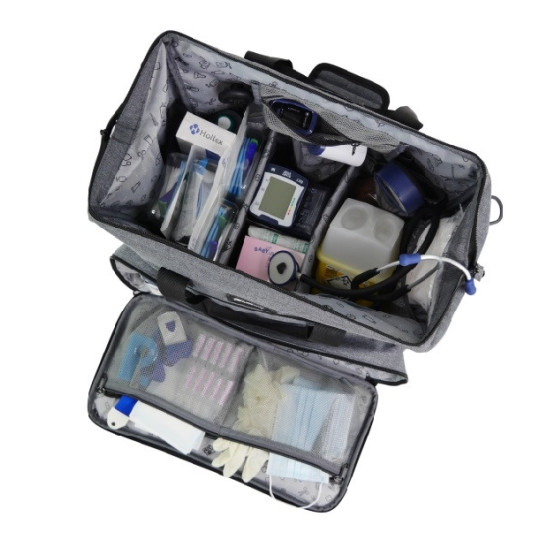 Le sac médical Eiffel de la marque De Boissy est conçu pour les médecins et les infirmières. Il offre une grande capacité de rangement. Fabriqué en tissu polyester gris résistant et déperlant.