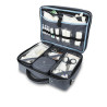 Le compartiment principal est composé de deux espaces pour les documents A4 dont un avec fermeture éclair, des élastiques de maintien, de trois compartiments transparents extractibles et d'un ampoulier isotherme avec sa poche de gel froid.