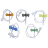 Le microperfuseur épicrânien de la gamme EUROFLY des laboratoires EUROMEDIS est un dispositif médical utilisé principalement pour l'administration intraveineuse de médicaments et de fluides. Les ailettes longues du produit sont reconnaissables à leur code couleur. La tubulure en PVC des microperfuseurs mesure 30 cm.