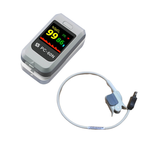 L'oxymètre de pouls PC-60N permet de mesurer la SPO2 chez l'adulte mais également chez l'enfant grâce au capteur souple déporté. L'écran OLED couleur multidirectionnel (4 positions) permet de visualiser le pourcentage de la SPO2, le rythme cardiaque (PR) et l'indice de perfusion (PI).