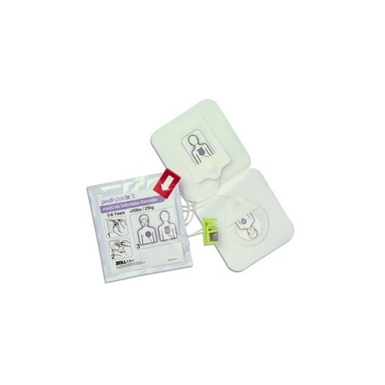 L'électrode de défibrillation pédiatrique Zoll Pedi Padz II relève les défis que posent les patients de pédiatrie et répond aux critères de RCR de l'AHA concernant la taille.