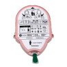 Le modèle pédiatrique est de couleur rose avec électrodes spécifiques: la mise en place de cette batterie initialise automatiquement le DSA pour délivrer un choc adapté à 50 J.