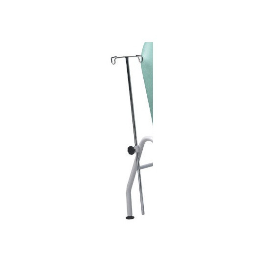 Tige porte sérum 2 crochets adaptable sur le fauteuil de prélèvement Cayeux de la marque Vog Medical. La douille de fixation est livré de base avec le fauteuil de prélèvement Cayeux.
