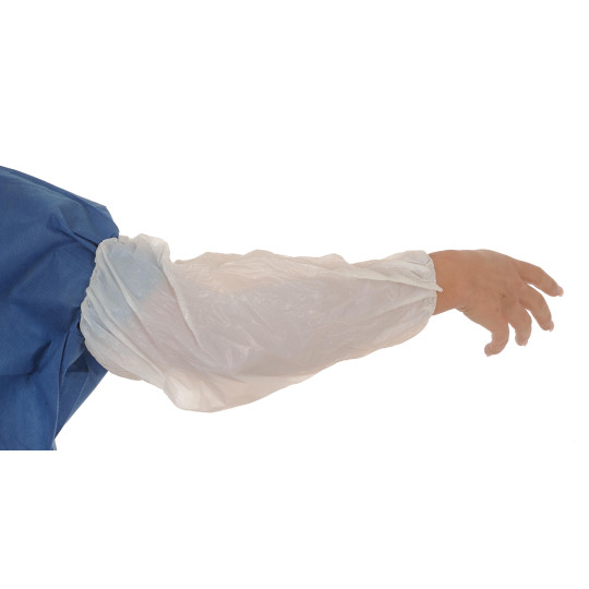 Les manchettes de protection pour les bras en polyéthylène blanc à usage unique et non stériles. Elles sont dotées d'un élastique aux extrémités.