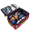 L'intérieur est complétement adaptable aux besoins du secouriste grâce aux 4 compartiments extractibles en velcro avec la partie frontale transparente et différenciés selon le code de couleurs normalisé (bleu : système respiratoire, rouge : système circulatoire, vert : matériel chirurgical divers, jaune : matériel pédiatrique).