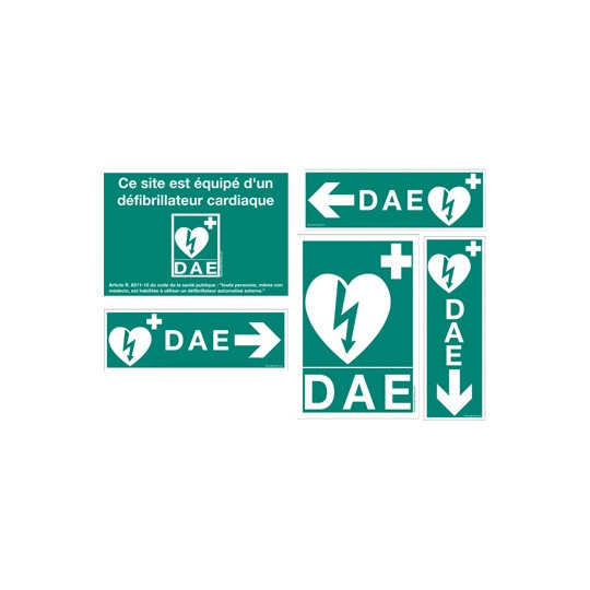 Les panneaux signalétiques de qualité premium dont certains réalisés en aluminium sont conçus pour signaler la présence d'un défibrillateur DAE à l'extérieur d'un bâtiment. Conforme à l'arrêté du 16 août 2010, le kit comprend :