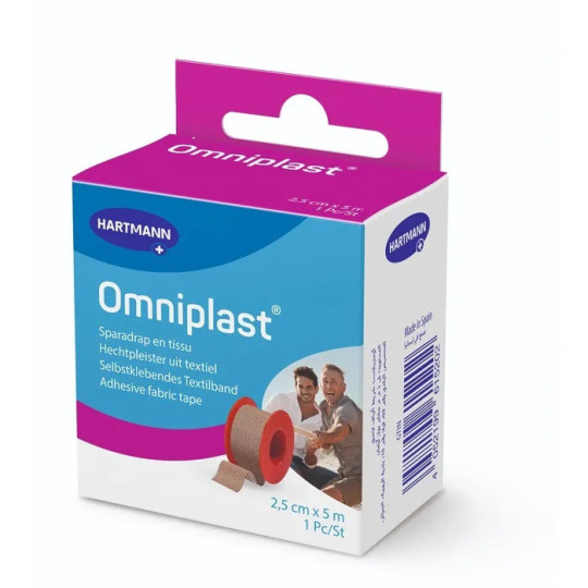 Le sparadrap en tissu Omniplast Hartmann est conçu pour offrir une fixation efficace et durable des pansements ou des compresses en particulier sur de grandes surfaces. Omniplast laisse respirer la peaux et peut être déchiré à la main en longueur et en largeur.