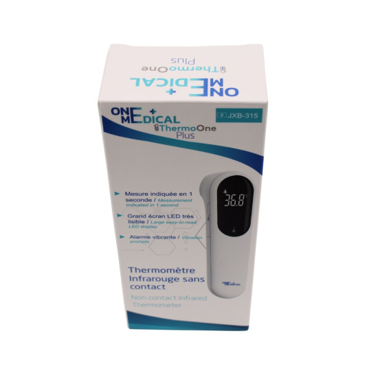 Thermo One PLus est un thermomètre frontal sans contact qui offre une grande précision des mesures. Trois modes de mesure : température corporelle, de surface et ambiante. Le thermomètre affiche la température en 1 seconde et dispose d'une mémoire de 32 mesures.