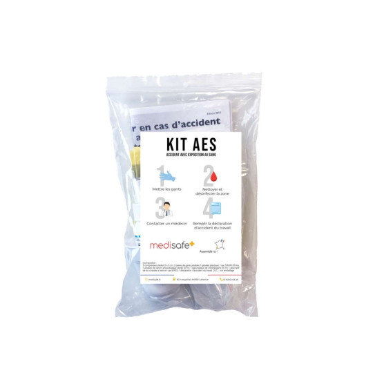 Le kit AES exposition au sang est conçu pour les premiers soins face à un accident avec exposition au sang. Sa composition permet de décontaminer un soignant ou un secouriste après un contact avec le sang d'une victime. Le set d'urgence est un ensemble de dispositifs médicaux.